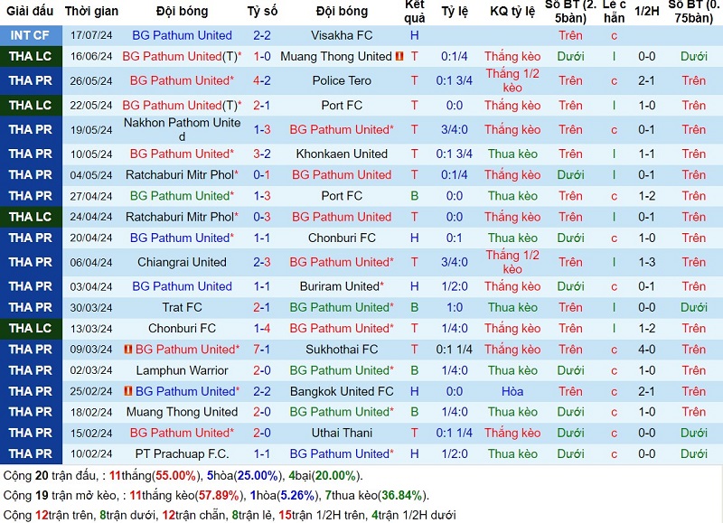 Phong độ gần đây của Pathum United vs Dortmund