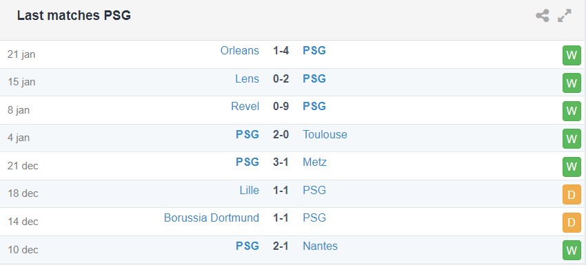 Bất chấp những tổn thất ở hàng phòng ngự thời gian qua cùng những tin đồn xoay quanh tương lai của chân sút chủ lực Mbappe, Paris Saint-Germain vẫn đang duy trì được phong độ ổn định với chuỗi 12 trận bất bại, trong đó có 5 chiến thắng liên tiếp vừa qua. Tính rộng ra, thầy trò Enrique chỉ thua 1 ở 18 trận gần nhất trên mọi đấu trường.