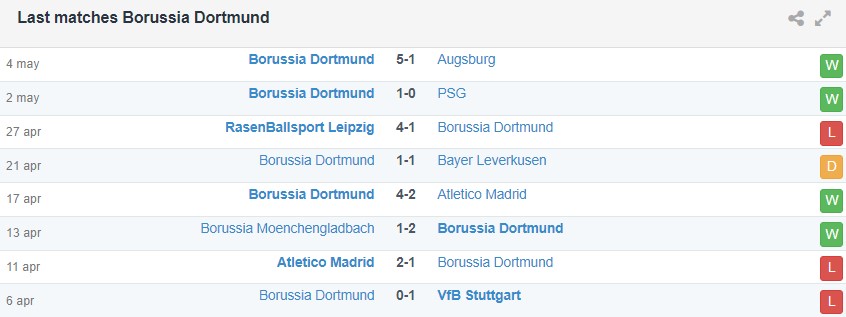Đây là nhiệm vụ được đánh giá nằm trong tầm tay của Marco Reus cùng các đồng đội bởi ngoài việc đã thể hiện được lối chơi sòng phẳng trước PSG trong cả 3 trận gặp đối thủ này ở mùa giải năm nay, lịch sử cũng đang chỉ ra rằng Dortmund đều vào chung kết 2/2 lần trước đó khi thắng trên sân nhà.