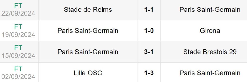 - PSG đã thắng 3 trận sân nhà liên tiếp.