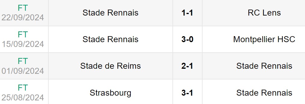 - Rennes đã thua 3 trận sân khách liên tiếp.