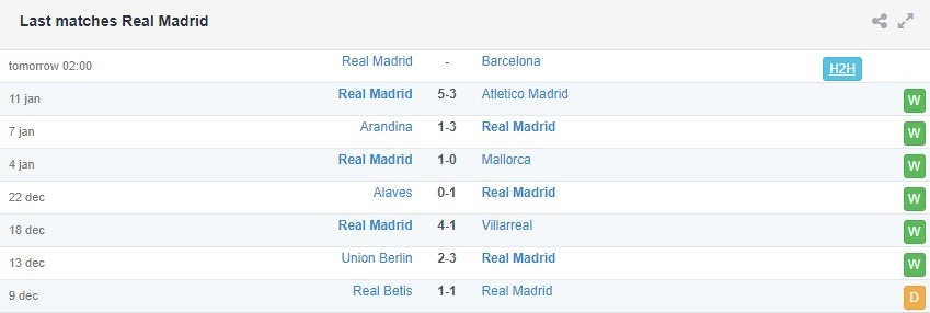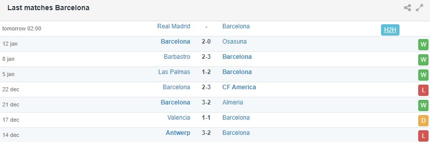 Tuy vậy, liệu có thể duy trì phong độ này trong trận gặp Real hay không vẫn đang là câu hỏi được đặt nhiều nhất cho HLV Xavi lúc này khi thành tích đối đầu của Barcelona trước đối thủ là không hề tốt. Chính xác thì trong 12 lần gặp nhau gần đây nhất, Blaugrana chỉ thắng 4 và thua tới 8. Đó là còn chưa kể đến việc hàng thủ Barca đang tỏ ra vô cùng mong manh khi thủng lưới tới 6 bàn ở 4 trận gần nhất.