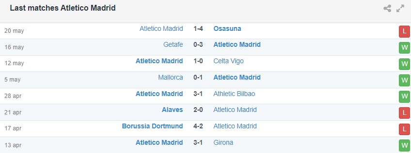 Tính rộng ra, Atletico đã thắng 25, hòa 11 và thua 18 trận với hiệu số bàn thắng bại là 83-63 trong 54 lần gần nhất 2 đội gặp nhau,
