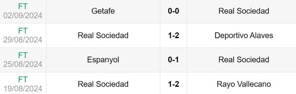 • Real Sociedad có chuỗi 4 trận thua trên sân nhà.