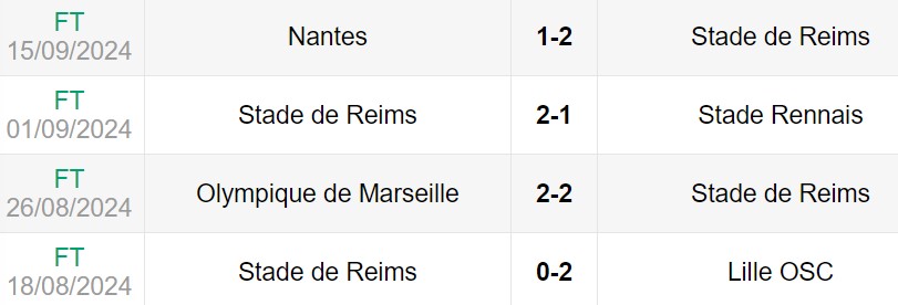Phong độ gần đây của Reims vs Paris Saint-Germain
