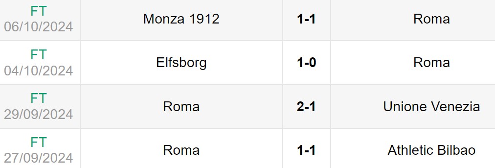 - 1-1 là kết quả được lặp lại nhiều nhất khi 2 đội gặp nhau tại Rome.
