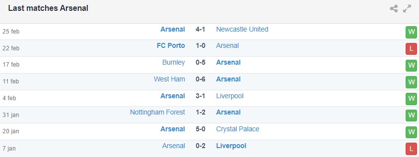 Đáng chú ý, trong giai đoạn thăng hoa kể trên, hàng công của Pháo thủ đạt hiệu suất cực tốt với 25 bàn thắng, hàng thủ của họ cũng không kém cạnh với chỉ phải nhận 3 bàn thua. Họ cũng có thành tích tốt khi hành quân đến sân Bramall Lane với 3 chiến thắng, hòa 2 và thua 2 với hiệu số bàn thắng bại là 9-4. Do đó, việc Arsenal sẽ dễ dàng hạ đẹp Sheffield là điều không khó để nhận định.
