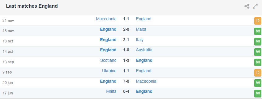 Tam sư cũng thể hiện quyết tâm đó vô cùng rõ ràng khi họ chỉ đánh rơi 4/24 điểm tuyệt đối ở vòng loại, dẫn đầu bảng khi hơn Ý xếp sau tới 6 điểm. Trong 10 trận gần nhất, đoàn quân HLV Southgate thắng tới 8, hòa 2 và không thua trận nào. Tính riêng ‘đất của mình’, Kane cùng các đồng đội đang có chuỗi 4 trận thắng liên tiếp.