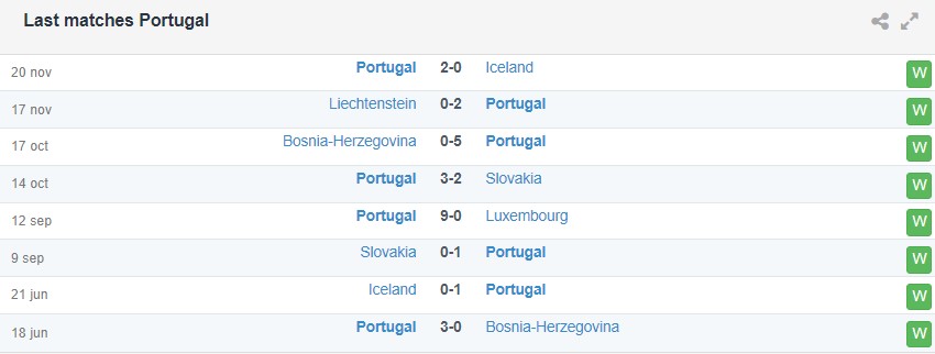 Phong độ gần đây của Bồ Đào Nha vs Thụy Điển