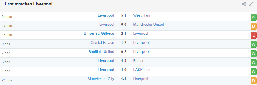 Đoàn quân HLV Jurgen Klopp cũng duy trì phong độ tốt ở giải quốc nội khi đã bất bại 10 trận liên tiếp, trong đó gồm 6 chiến thắng và 4 trận hòa. Trận thua gần nhất của họ tại EPL đã là từ thất bại 1-2 trước Tottenham hồi cuối tháng 9. Tuy nhiên, diễn biến trên sân chỉ ra Liverpool thường rất rơi vào những cuộc rượt đuổi. Bằng chứng là tròng 17 trận đã đấu kể từ đầu mùa, họ để đối phương mở tỷ số trước tới 8 lần. Dù sau đó họ lội ngược dòng vô cùng kịch tính như điển hình là trận thắng Fulham 4-3. Rõ ràng, lội ngược dòng là thế hiện bóng dáng một nhà vô địch, nhưng nếu nó diễn ra quá thường xuyên thì chứng tỏ đội bóng đó đang gặp vấn đề khi luôn để rơi vào tình thế phải làm vậy.
