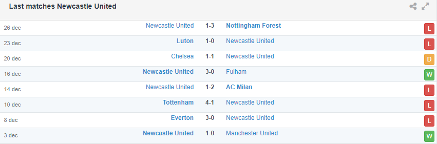 Ở phần sân đối diện, Newcastle sau khởi đầu mùa giải thuận lợi lại đang gặp nhiều khó khăn khi chấn thương của những trụ cột khiến họ không thể duy trì được sự ổn định. Đội bóng của Eddie Howe hiện đã thua 4/5 trận gần nhất, qua đó tụt xuống vị trí thứ 9 với chỉ 29 điểm sau 19 vòng đấu. Đồng thời làm cho cơ hội tham dự đấu trường Champions League mùa giải năm sau của họ hẹp dần khi hiện đã cách Top 4 tới 11 điểm.
