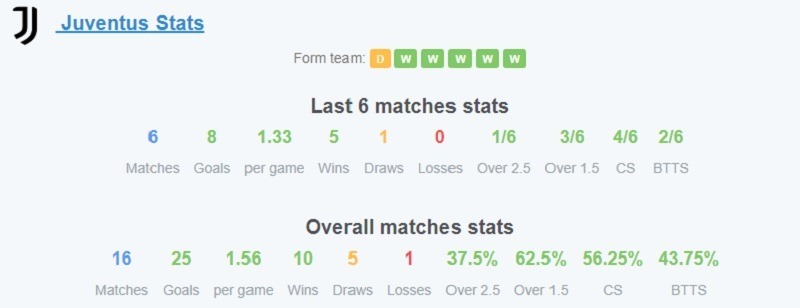- Soi kèo tài xỉu: Dù bất bại 8 trận gần nhất, nhưng Juventus không trận nào ghi quá nổi 2 bàn và đa phần là thắng lợi tối thiểu 1-0. Con số bàn thắng trung bình của đội bóng này 6 trận vừa qua chỉ là 1.33, thua nhẹ 1.5 bàn/ trận của Monza. Hai trận gặp nhau gần nhất giữa 2 bên ở Serie A cũng không vượt quá 2 bàn thắng. Do đó, khả năng trận này về Xỉu là rất lớn.