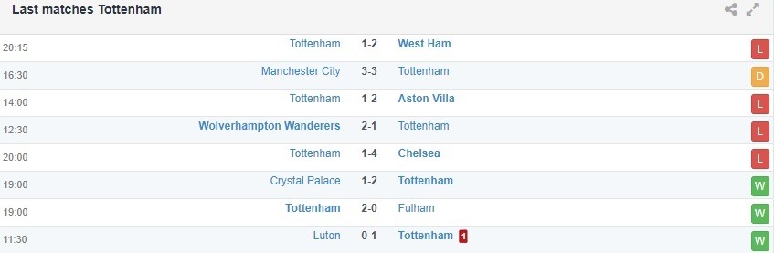 Ở thời điểm Tottenham bay cao với vị trí đầu bảng cùng chuỗi trận bất bại liên tiếp 10 trận đầu tiên của mùa giải Premier League 2023/24, nhiều người đã ‘kháo’ nhau rằng kiểu gì ‘Gà trống’ cũng sẽ sớm buông như chu kỳ của họ trong gần thập kỷ vừa qua. Và điều này quả nhiên đã thành sự thật, nhưng cái cách mà đoàn quân HLV Postecoglou sa sút là vô cùng khó tin. Họ như biến thành một đội bóng khác khi đã không biết đến mùi chiến thắng 5 trận gần nhất ở giải quốc nội, trong đó có tới 4 trận thua, mới nhất là thất bại 1-2 trước West Ham hồi giữa tuần. Kết quả này đồng thời khiến Lilywhites tụt xuống vị trí thứ 5 với 9 điểm kém đội đang dẫn đầu Arsenal.