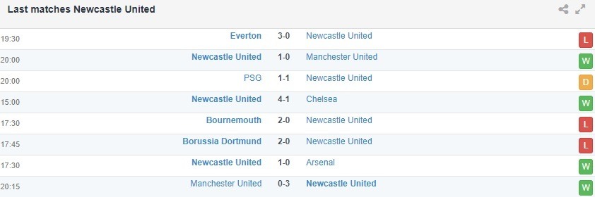 Ở phần sân đối diện, Newcastle cũng bất ổn không kém với 3 thắng, 2 thua và 1 hòa trong 6 trận gần nhất ở giải quốc nội. ‘Chích chòe’ cũng mới vừa bị đội nằm trong nhóm cầm đèn đỏ là Everton hủy diệt với tỷ số 0-3 ngay trên sân nhà của đối thủ. Tuy nhiên, với chuỗi 8 trận gần nhất không thua trước các đội bóng London, cùng với việc chỉ kém vị trí thứ 5 của Tottenahm 1 điểm thì đây sẽ là động lực tiếp thêm sự tự tin cho thầy trò HLV Eddie Howe trong trận đấu gắp tới.