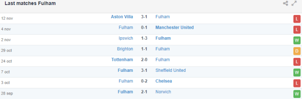 Phong độ gần đây của Fullham vs Wolves