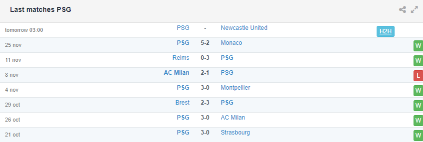 Tỷ lệ đối đầu giữa PSG vs Newcastle