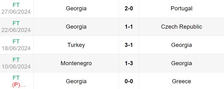 Phong độ gần đây của Tây Ban Nha vs Georgia