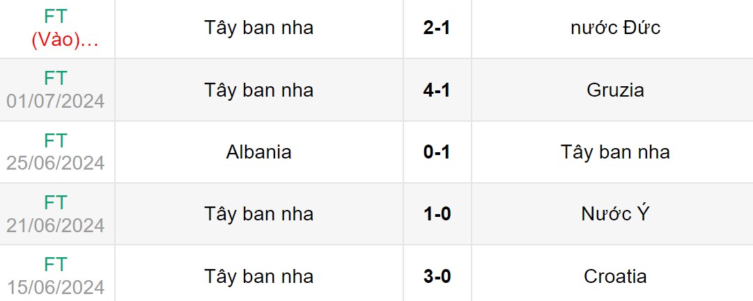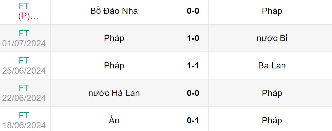 Phong độ gần đây của Tây Ban Nha vs Pháp