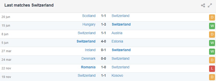 Phong độ gần đây của Thụy Sĩ vs Đức