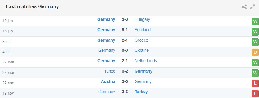 Tin vui cho đội tuyển Đức khi họ không gặp bất kỳ tổn thất nào về mặt lực lượng sau 2 trận đấu vừa qua. Điều này đồng nghĩa HLV Julian Nagelsmann sẽ có đầy đủ những nhân sự tốt nhất để thực hiện chiến thuật và hướng đến chiến thắng trước Thụy Sĩ. Đây là lợi thế không nhỏ cho “Cỗ xe tăng” trong bối cảnh họ đang có tinh thần hừng hực sau chuỗi trận ấn tượng.