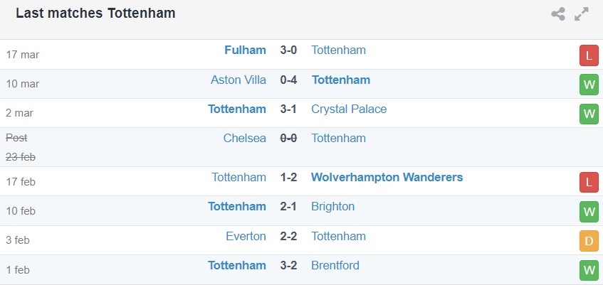Phong độ gần đây của Tottenham vs Luton Town