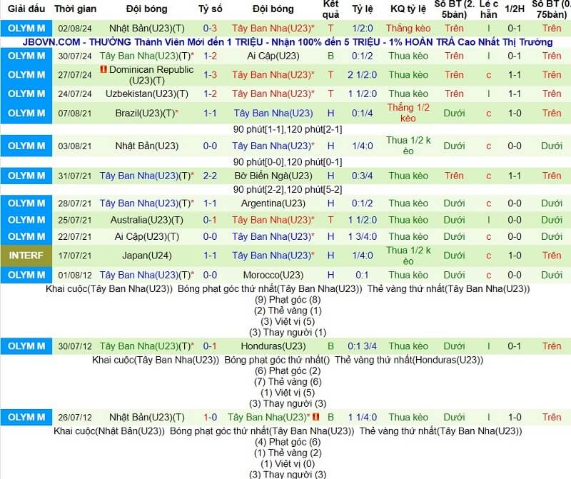 Lịch sử đối đầu giữa U23 Morocco vs U23 Tây Ban Nha