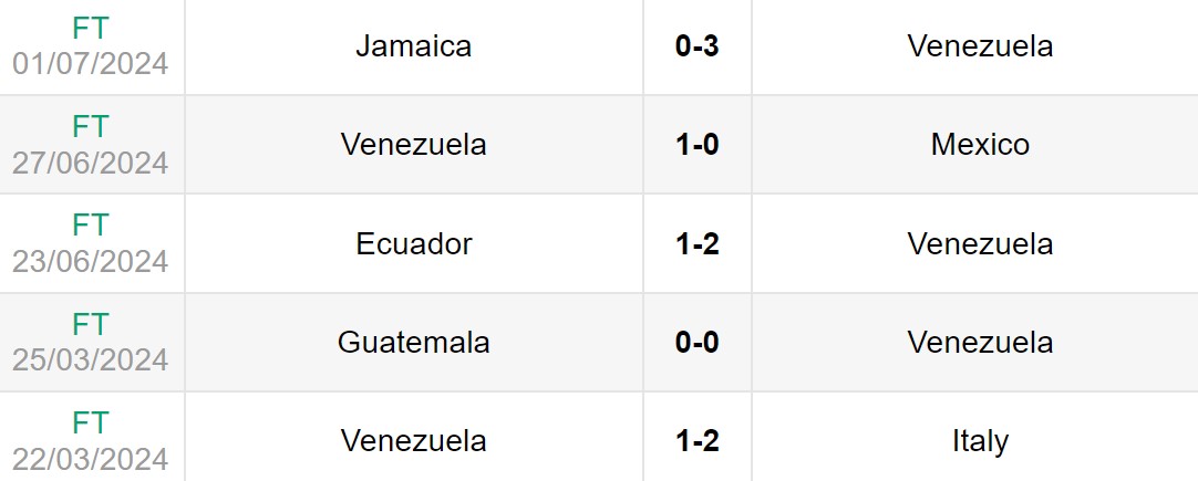 Phong độ gần đây của Venezuela vs Canada
