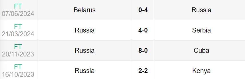 - Nga đã giữ sạch lưới 3 trận liên tiếp.