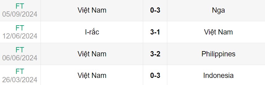 - Việt Nam đã để thủng lưới ít nhất 1 bàn trong 10 trận gần đây nhất.