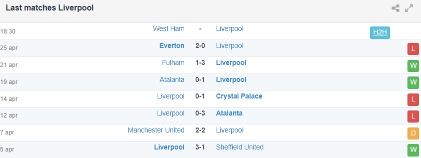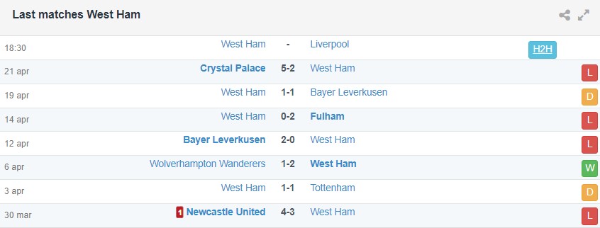 Song còn nước thì vẫn cần phải tát, vừa hay West Ham là miếng mồi ngon để Liverpool có thể giành 1 chiến thắng nhằm xốc lại tinh thần khi đối thủ này đang có phong độ rất tệ với chỉ 1 chiến thắng giành được ở 8 trận gần nhất trên mọi đấu trường. Trong đó gồm chuỗi 4 trận chỉ hòa và thua trên sân nhà.