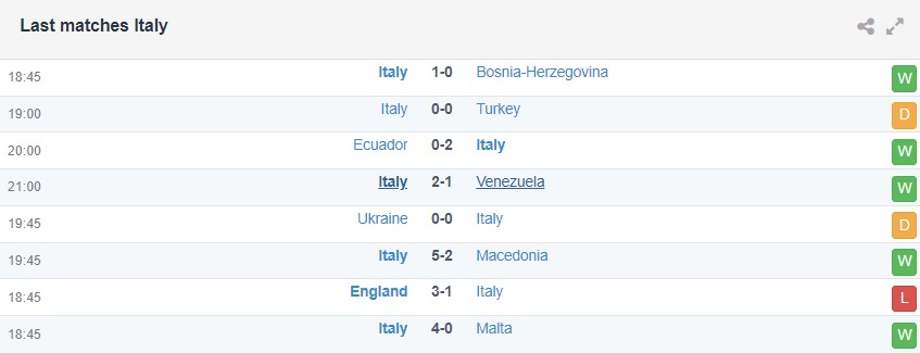 Mặc dù vậy, Italia vẫn có cơ hội lớn để giành chiến thắng trong trận mở màn bởi dựa trên các thống kê lịch sử, Italia chỉ thua 3 trong tổng số 27 trận vòng bảng ở các kỳ Euro trước mà họ tham gia, còn lại họ thắng 15 trận và hòa 9 trận. Điều này cho thấy khả năng giành 3 điểm của Italia ở trận đấu mở màn là khá cao.