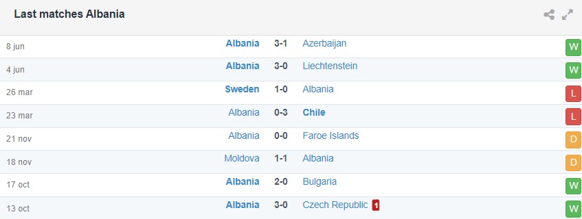 Ý đã toàn thắng trận mở màn ở 2 kỳ Euro gần nhất, và với 1 đối thủ ít kinh nghiệm và thua kém về chất lượng đội hình như Albania thì sẽ là cơ hội để Azzurri nâng chuỗi của mình lên con số 3. Tỷ số thắng cách biệt tối thiểu 2 bàn trở lên nghiên về sắc thiên thanh xác suất cao sẽ là kịch bản của trận đấu này.
