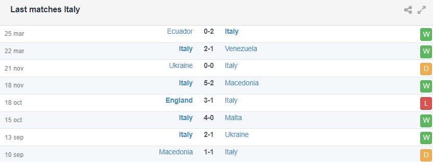 Phong độ gần đây của Ý vs Thổ Nhĩ Kỳ