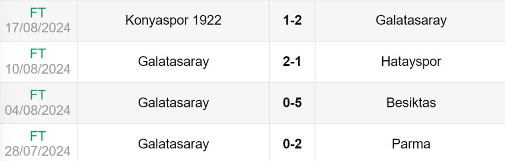 - Galatasaray đã thắng 19 trong số 20 trận gần nhất của họ