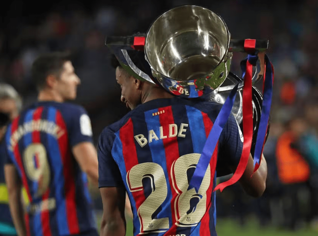 Dù chỉ có 1358’ ở mùa giải đó, nhưng với tiềm năng cực lớn, HLV Xavi đã mạnh dạn tin tưởng trao cho anh vị trí đá chính của Alba. Không phụ sự kỳ vọng của ông thầy, Balde ghi 1 bàn và có 7 pha kiến tạo sau 44 trận ra sân, đóng góp rất lớn vào chức vô địch La Liga của Blaugrana mùa giải 2022/23. Anh cho thấy khả năng công thủ toàn diện, pha dâng cao và những quả tạt chính xác là một vũ khí nguy hiểm mà Balde mang lại cho các bài đánh của Xavi. Hiện cầu thủ này có hợp đồng đến hè 2024 với giá trị giải phóng hợp đồng 500 triệu Euro nhưng Barcelona đang đề nghị gia hạn tới năm 2027, đồng thời nâng phí phá vỡ hợp đồng lên gấp đôi con số cũ.