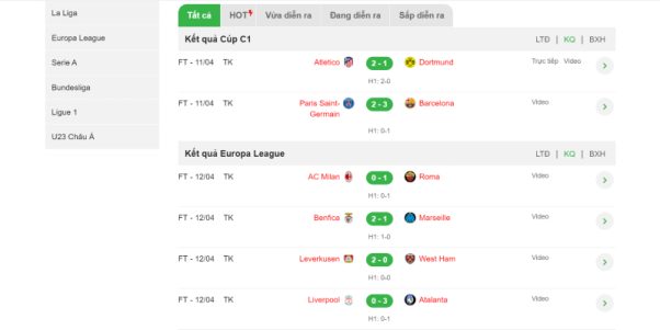 Cập nhật BXH kết quả bóng đá theo thời gian thực