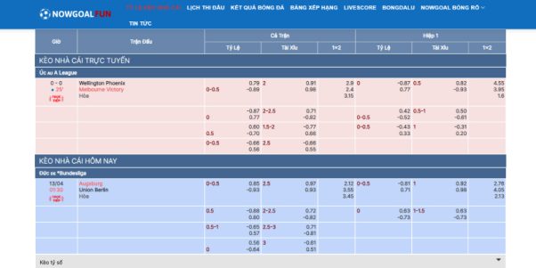 Truy cập chuyên trang, anh em có thể thoải mái soi kèo – cập nhật kèo nhà cái mới nhất mỗi ngày. Từ kèo Châu Á, kèo Châu Âu, kèo Tài xỉu, kèo hỗn hợp, cược tỷ số chính xác đến cược bàn thắng đầu/cuối,… Tất cả đều có tại Nowgoalfun hoàn toàn miễn phí.