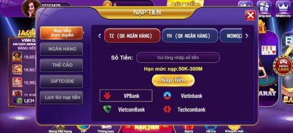 Nạp tiền trực tuyến là phương pháp được nhiều người chơi ưa chuộng vì tính đơn giản và độ bảo mật cao. Đặc biệt, hạn mức cho mỗi giao dịch nạp tiền vào hệ thống là khá cao, lên tới 500 triệu đồng. Cách thực hiện nạp tiền trực tuyến như sau: