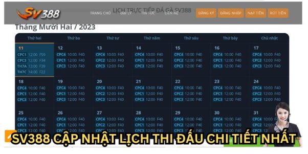 Lịch thi đấu được SV388 cập nhật đầy đủ mỗi ngày