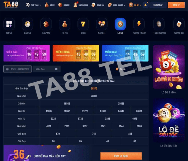 TA88 là một trong những nhà cái uy tín và phổ biến nhất trong lĩnh vực xổ số trực tuyến. Các trò chơi xổ số tại TA88 bao gồm: Xổ số Mega 6/45, Power 6/55, Max 4D, … Tỷ lệ thưởng cược cho các trò chơi này dao động từ 1:90 đến 1:10.000, đảm bảo tính hấp dẫn và công bằng cho người chơi chơi.