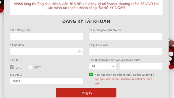 - Đăng ký 1 tài khoản tại VN88, tuyệt đối không sử dụng cùng lúc nhiều tài khoản