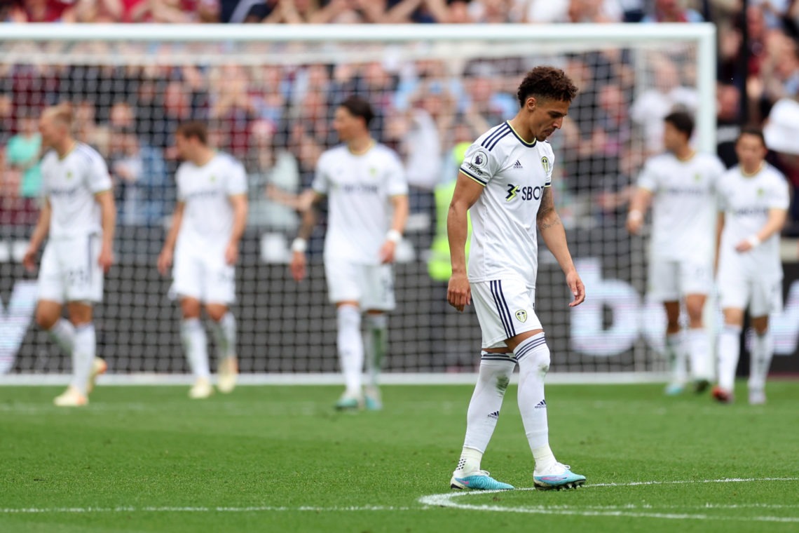 - LONDON, ENGLAND – MAY 21: Rodrigo Moreno of Leeds United looks dejected after the West Ham United second goal during the Premier League match between West Ham United and Leeds United at London Stadium on May 21, 2023 in London, England. (Photo by Julian Finney/Getty Images)
